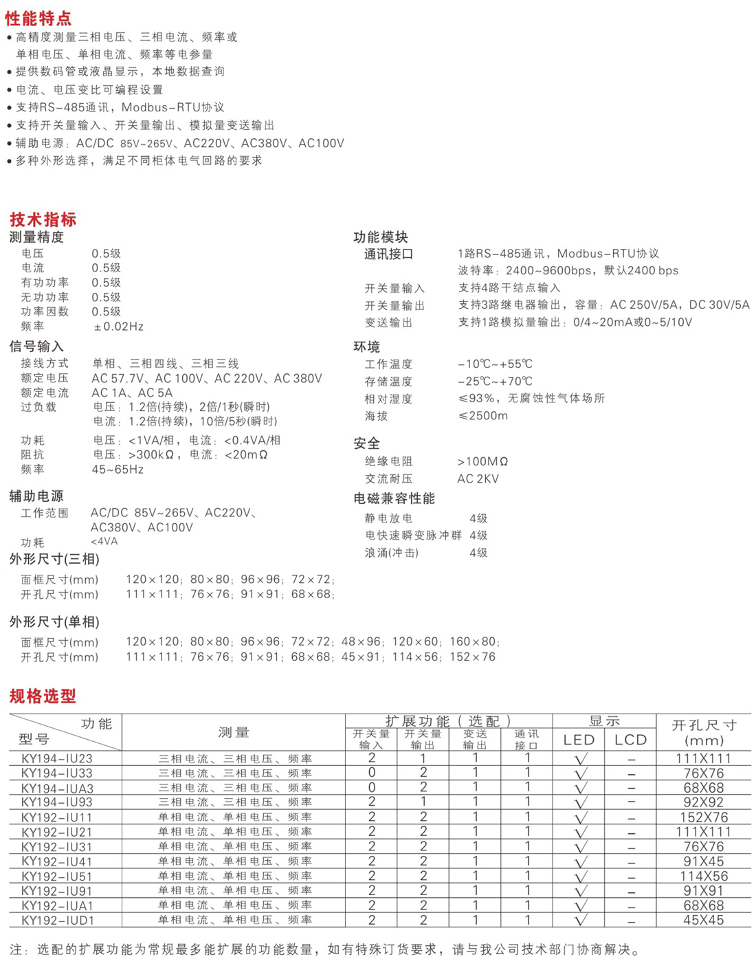 KY192-A/V系列数显单相电流电压表